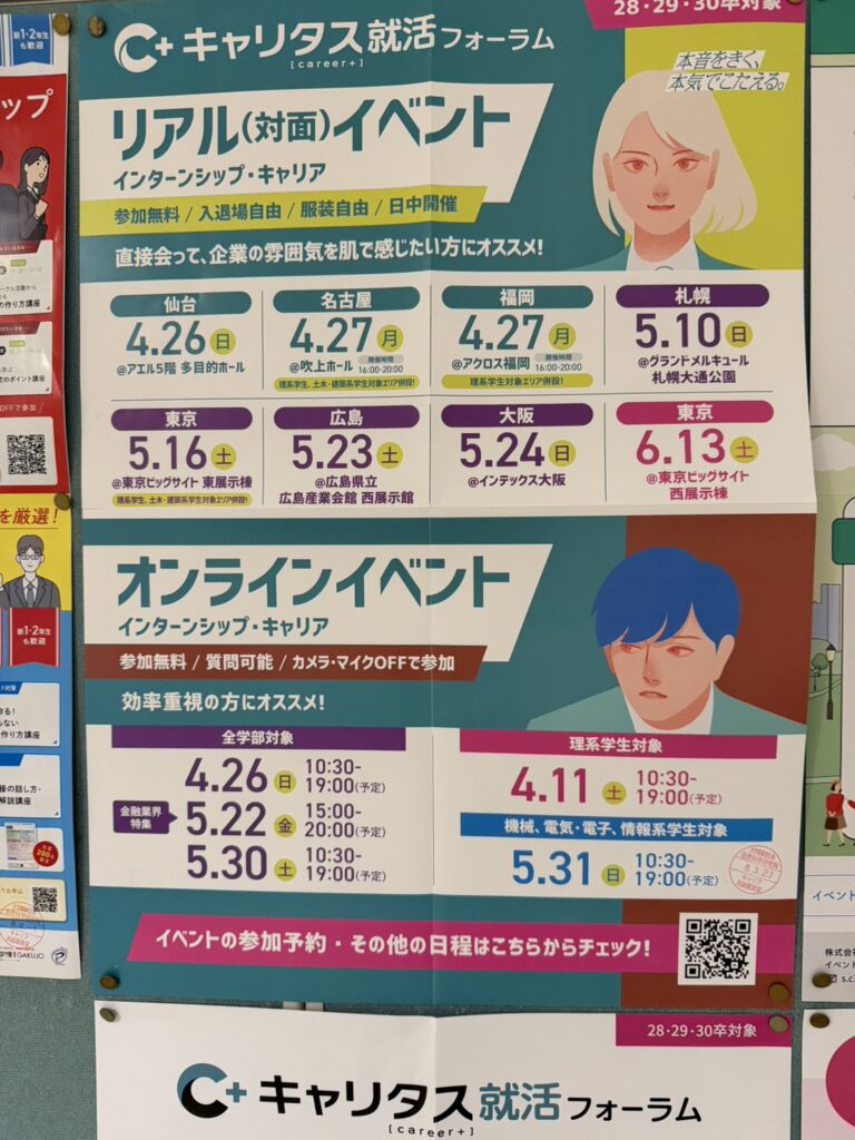【#インターンシップ・キャリア リアル(対面)イベント 】の案内(2024/5/17更新)