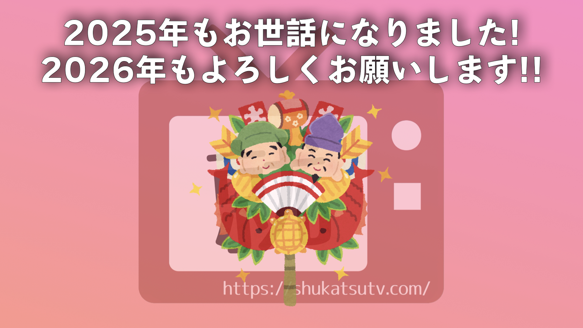 2025年もお世話になりました。 就活TVの新年の活動は、2026年1月5日(月)より開始いたします。 コラム掲載、ショート動画撮影等のご依頼を承っております。 2026年も変わらぬご愛顧を賜りますよう、よろしくお願い申し上げます。年末年始はごゆっくりお過ごしください。